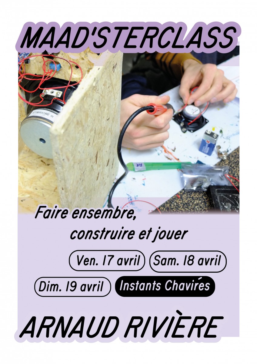 L’atelier « FAIRE ENSEMBLE (construire & jouer) » proposé par Arnaud Rivière sera organisé en deux temps et visera à créer un ensemble éphémère autour de l’improvisation bruitiste électronique sur dispositif électroacoustique personnalisé.