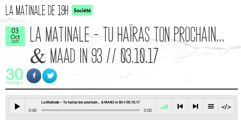 Alice Roger, directrice du réseau MAAD 93, était l'invitée de la matinale de 19h de Radiocampus Paris mardi 3 octobre.
