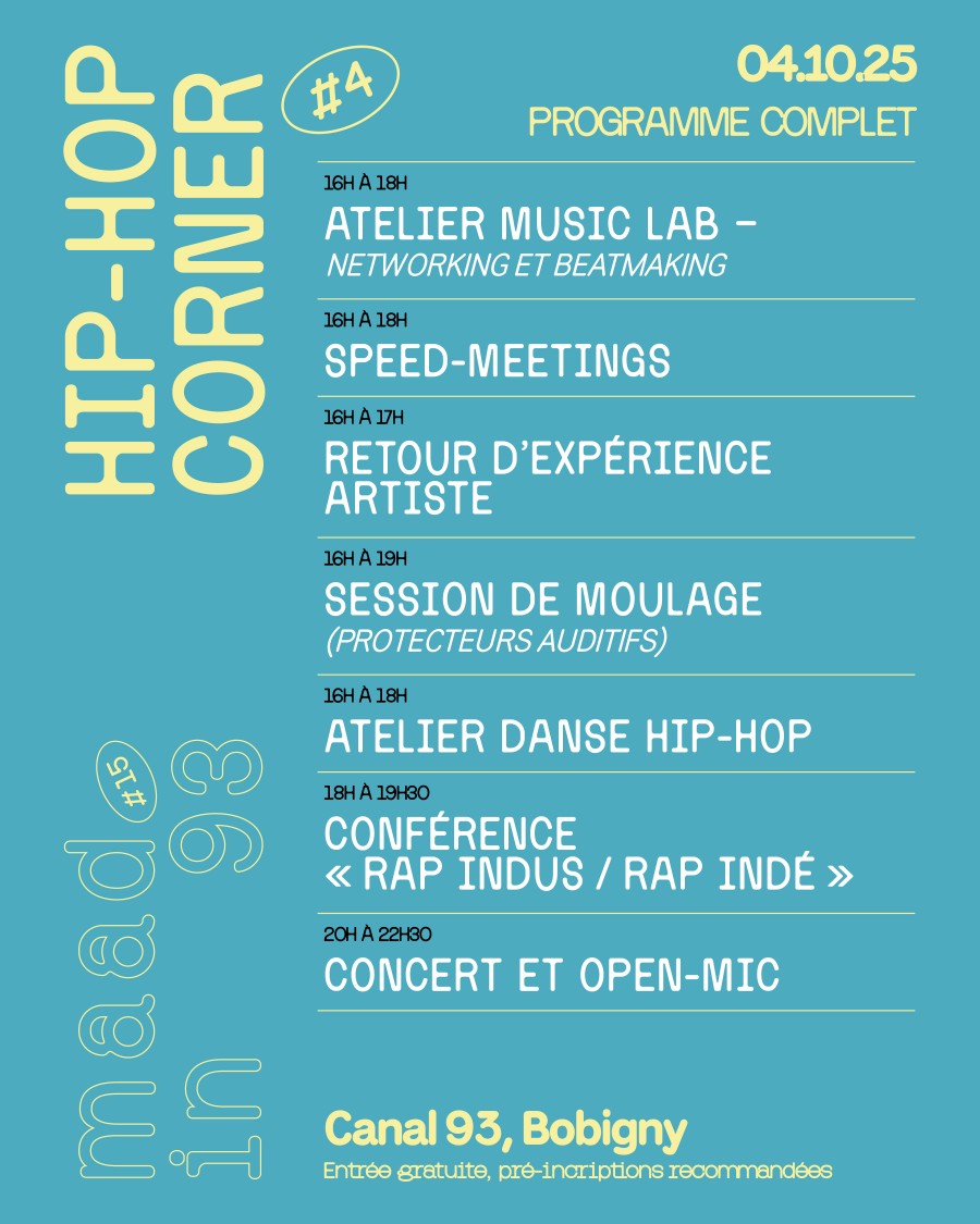 Rendez-vous le samedi 4 octobre 2025 pour une journée immersive dédiée aux artistes (rap / beatbox / beatmaking / DJ) et leur entourage.