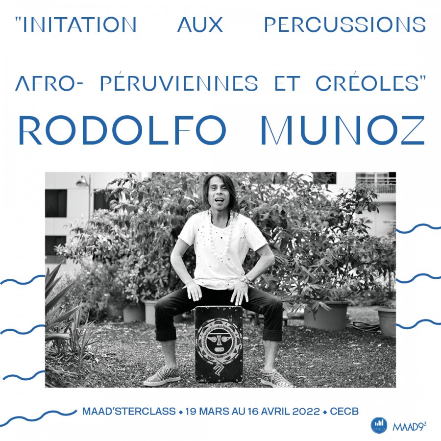 Né au Pérou, Rodolfo Muñoz apprend les percussions afro-péruviennes, créoles et latines et les percussions afro-cubaines. Dans cette MAAD’sterclass, il initiera les participant·e·s à ces différentes styles de musique et de rythmes nés post colonisation, suite à la rencontre entre les populations amerindiennes, espagnoles et africaines.
