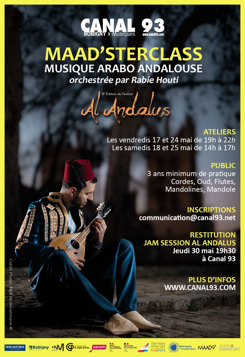 Destinées à un public ayant un minimum de 3 ans de pratique en cordes, oud, flûtes, mandolines ou mandole, les Master Class se dérouleront les vendredis 17 et 24 Mai de 19h à 22h, ainsi que les samedis 18 et 25 Mai de 14h à 17h.