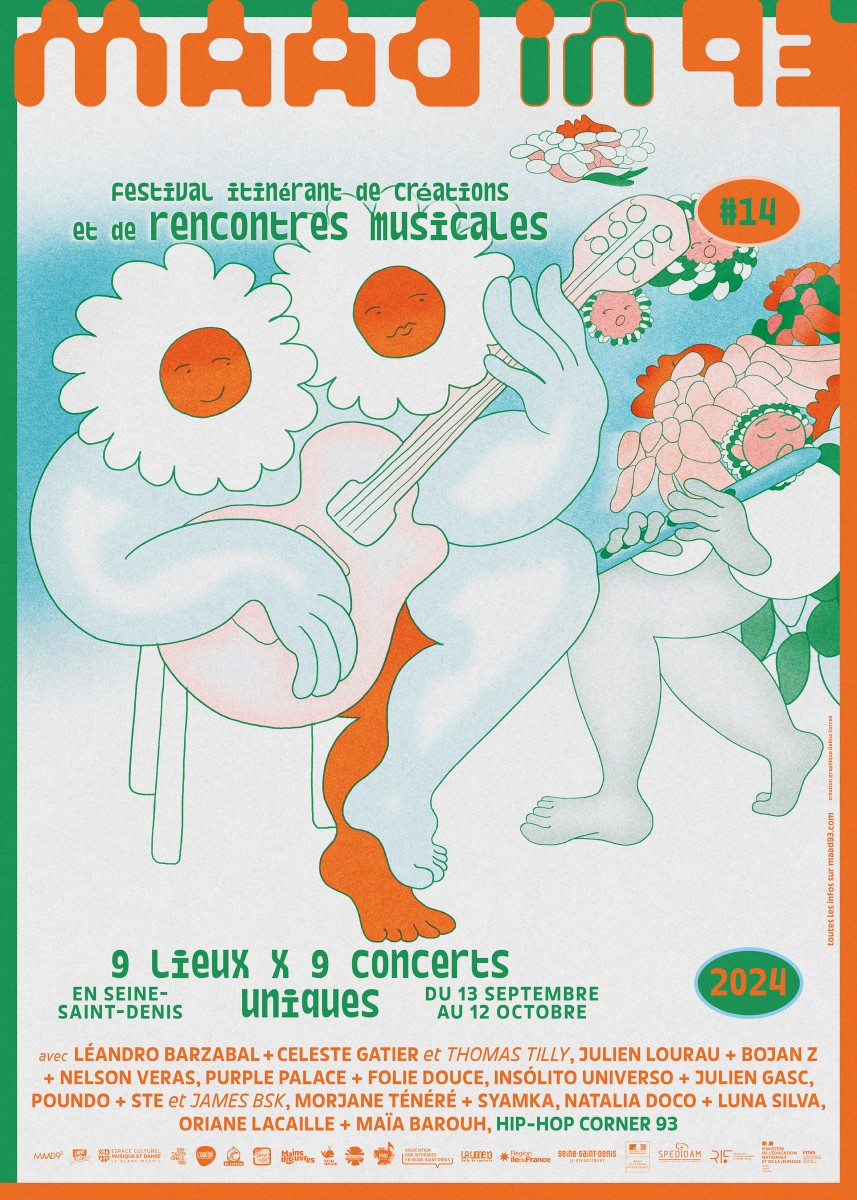 Avec : Léandro Barzabal + Céleste Gatier / Thomas Tilly, Julien Lourau + Bojan Z + Nelson Veras, Purple Palace + Folie Douce, Insólito UniVerso + Julien Gasc, Poundo + STE / James BSK, Morjane Ténéré + Syamka, Natalia Doco + Luna Silva, Oriane Lacaille + Maïa Barouh, et la première journée Hip Hop Corner 93 !