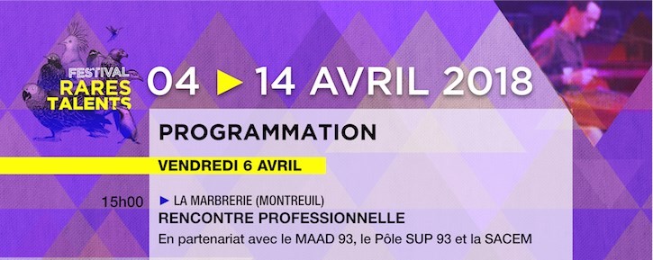 Rencontre organisée par le MAAD 93 dans le cadre du festival des Rares Talents en partenariat avec le Pôle Sup’93, la SACEM et l’IRMA.