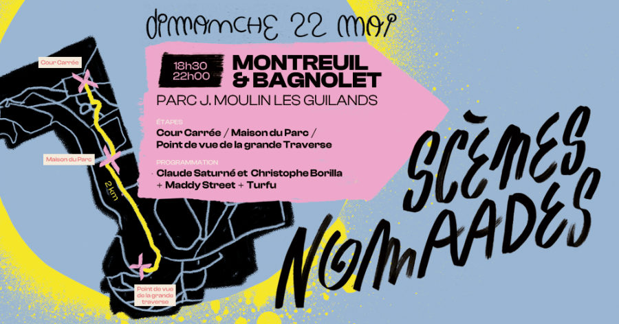 Le dimanche 22 mai le Café la Pêche, les Instants Chavirés et la Maison Populaire ont l'immense plaisir de vous inviter pour l'ouverture des Scènes Nomaades au parc Jean-Moulin Les Guilands à Montreuil et Bagnolet.