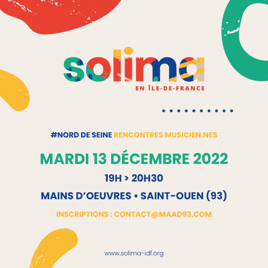 Dans le cadre du SOLIMA Île-de-France, trois rencontres sont organisées à destination des musicien.ne.s amateur.e.s et professionnel.le.s, habitant et ou pratiquant les musiques actuelles dans le territoire interdépartemental «Nord-de-Seine» *, pour échanger autour de leurs pratiques et de leurs attentes vis-à-vis des structures culturelles.
